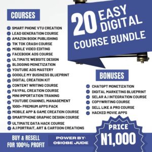 Transform your knowledge into a money-making machine with the EASY COURSE BUNDLE. Gain instant access to 20+ high-demand courses designed to skyrocket your income, plus resale rights to keep 100% of the profits!